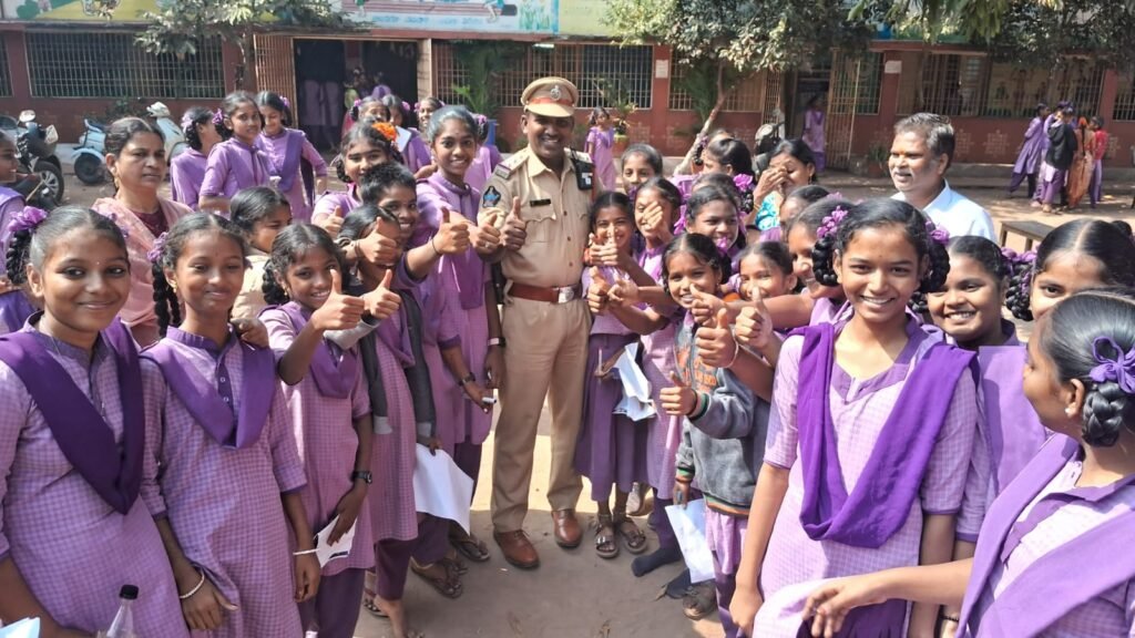 వన్ టౌన్ సి.ఐ జి.డి బాబు ఆధ్వర్యంలో శనివారం నిర్వహించడం జరిగింది. ఈ సందర్భంగా ఇన్స్పెక్టర్ జి.డి.బాబు మాట్లాడుతూ గుడ్ టచ్ అండ్ బ్యాడ్ టచ్ గురించి తెలియజేయడం జరిగింది. సైబర్ క్రైమ్ గురించి మరియు బాగా చదువుకోవాలని తల్లిదండ్రుల ఆశయాలను కొనసాగించాలని చెప్పడం జరిగింది.సెల్ ఫోన్ ఎక్కువగా వాడ రాదని, ఎవరైనా రాగింగ్ కి పాల్పడిన ర్యాగింగ్ చేయడానికి ప్రయత్నించిన వెంటనే తనకు (జీడీ బాబు ఇన్స్పెక్టర్) కి తెలియజేయాలని సూచించడం జరిగింది. త్వరలో టెన్త్ క్లాస్ ఎగ్జామ్స్ జరుగుతున్నందున పిల్లలందరూ బాగా చదువుకోవాలని ఉన్నత ఆశయాలను సాధించాలంటే చదువు ఒకటే మార్గం అని ఈ సందర్భంగా ఇన్స్పెక్టర్ జి.డి బాబు తెలియజేయడం జరిగింది.ఏదైనా సమస్య వచ్చినట్లయితే 24/7 ఎప్పుడైనా ఇన్స్పెక్టర్ పోలీస్ 9440796019 ఫోన్ చేస్తే తగిన సహాయ సహకారాలను అందిస్తామని.. పోలీస్ సేవలు వినియోగించు కోవాలని తెలియజేయడం జరిగింది.